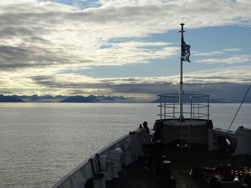 In de nacht van dinsdag 21 op woensdag 22 augustus is de Plancius naar de straat van Hinlopen gevaren. Aan de ene kant van het water ligt het eiland Spitsbergen en aan de andere kan het eiland Nordaustlandet. In Nederland noemen we alle eilanden tezamen ook Spitsbergen, maar sinds 1920 noemen bijna alle inwoners van andere landen dit Svalbard. Svalbard heeft een hele mysterieuze uitstraling, zeker als er laaghangende bewolking rond de spitsige bergen hangen. En als je om je heen kijkt zie je ook overal gletsjers. Maar liefst 60% van Svalard is bedekt met ijs.
