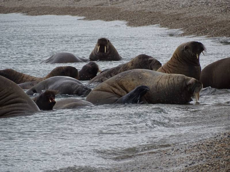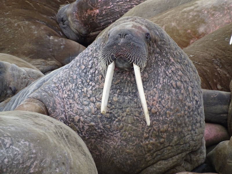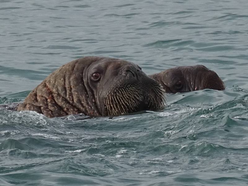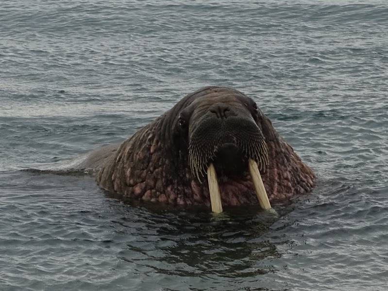 Woensdagavond 22 augustus zat ik met mijn hutgenoot in het restaurant aan het raam te eten (ruim 1 meter boven de zeespiegel). En toen kwam er toch zomaar voor ons raam een kop van een walrus!!!