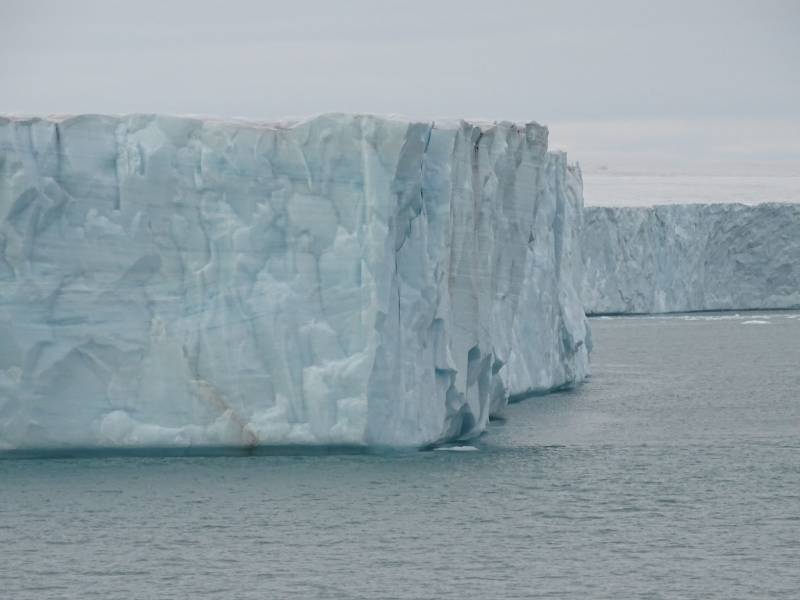 Die avond werden we ook door de expeditiestaf verrast met de meededeling dat we vanaf 20.00 tot 23.00 langs de enorme gletsjer in het zuiden van het eiland Nordaustlandet zouden gaan varen, de Brasvellbreen. Deze gletsjer maakt onderdeel uit van de ijskap op Nordaustlanded. Deze ijskap is maar liefst 160 km lang. Na Antarctia en Groenland de grootste/langste ijskap.