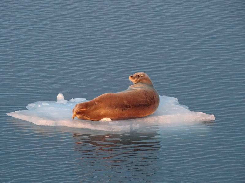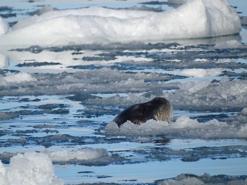 Terug op het schip spotte ik 's avonds in het fjord nog een baardrob.