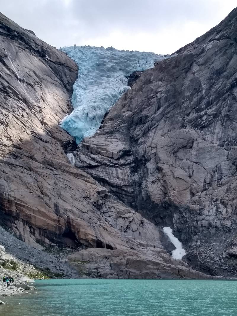 Zaterdagochtend 11 augustus werd Aadje om half 8 wakker. Gelijk maar even de gordijnen opengeschoven om te zien wat voor weer het was. De voorspellingen waren niet al te best, maar het was droog! Na een heerlijk ontbijt, ben ik rond half 10 weer op pad gegaan. Deze dag stond de Briksdalsbreen op het programma. Deze gletsjer is een van de noordelijke zijarmen van de Jostedalsbreen. De Jostedalsbreen is de grootste gletsjer op het vaste land van Europa.