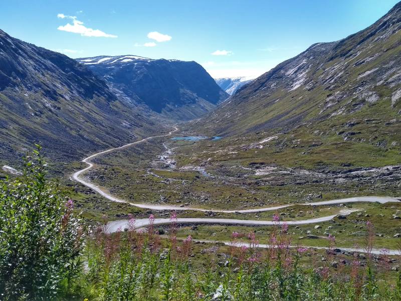 Na het beklimmen van de trollenweg ben ik naar Geiranger gereden. Na een stop in dit toeristische plaatsje verder gereden naar de Dalsnibba. Dit is een erg mooi ruig berggebied. Na alle haarspeldbochten (niks engs aan!) ben ik vervolgens naar Stryn gereden via vier lange tunnels. De tunnels hier in dit deel van Noorwegen zijn prima aangelegd. Vorig jaar (Lofoten en Senja) waren de tunnels regelmatig vrij krap en moest je bij tegemoetkomend verkeer al gauw de tunnelwand inrijden.