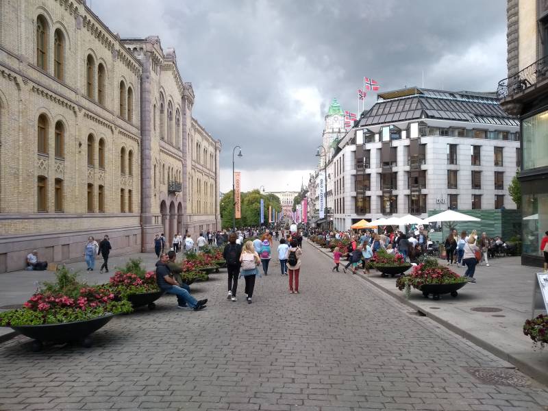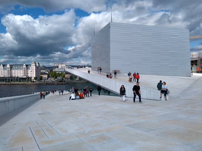 Op vrijdag 17 augustus stond een dagje Oslo op mijn programma. Dus 's morgens de wandelschoenen aan en de rugtas op en gaan! Vanaf het hotel is het 1 km lopen naar de metro. Daar heb ik een dagpas voor de metro gekocht (105 kronen). In een half uur ben je dan midden in de stad. Eerst heb ik het opera gebouw bekeken en vervolgens beklommen. Erg mooi, 't is in de vorm van een ijsberg! Daarna effe shoppen. Bij mijn favoriete sportzaak Stormberg een mooie dikke wandelbroek gekocht; kan ik hem gelijk uittesten op Spitsbergen! Vandaar over de Karl Johan gate naar het koninklijk paleis gelopen. Terug in het hotel heb ik 's avonds een ritje met de auto rond de skispringschans op de Holmenkollen gemaakt.
