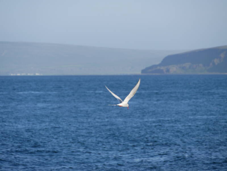Dus zat Aadje op donderdag 1 augustus al vroeg aan het ontbijt. Het was die morgen gelukkig windstil, droog en zo'n 15 graden. Bij het ontbijt hoorde ik dat trip doorging en dat het vissersbootje om 9 uur zou vertrekken uit de kleine haven. In totaal waren er 6 gasten, een gids en een schipper aan boord (ze nemen max. 10 mensen mee). Ze vertelden dat gisteren door de sterke wind nagenoeg geen puffins te bekennen waren. Nu maar hopen dat ze er vandaag wel waren!