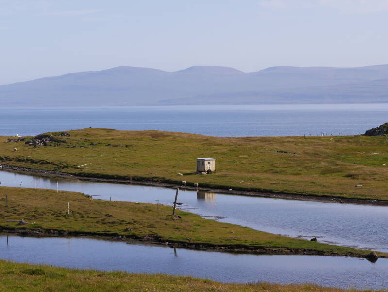 Woensdag 31 juli ging Aadje na 1 nacht in een stadshotel weer verder met haar reis in IJsland. Bij vertrek uit Isafjordur was het al 17 graden en de zon scheen volop. Voor deze dag stond een mooie bochtige route (wegnr. 61) langs verschillende fjorden op het programma. Natuurlijk heb ik onderweg diverse stops gemaakt. De eerste stop was een wandeling van 2 km naar de Valagil waterval. Gelukkig was de wandeling goed te doen en was het weer ook super. De tweede stop was een uitkijkpunt voor zeehonden aan het Skotufjordur. Maar wat was het dit keer weer een schitterende tocht langs dit deel van de Westfjorden! De wegen waren ook super, gewoon asfalt! Maar vooral het laatste stuk weg (nr 643) naar Drangsnes was erg mooi. Deze liep zo langs het Steingrimsfjord. Als het slecht weer is, dan slaan de golven zo over de weg! De bergen zijn hier weliswaar minder hoog en minder ruig, maar wat is het hier mooi en ook heel rustig. Om 18.00 uur ben ik aangekomen bij mijn onderkomen voor 2 nachten: het Malarhorn Guesthouse. Ik zit in huisje nr. 1 zo naast het fjord waar allerlei zeevogels (met name noordse sternen) zitten. Nu dat is voor Aadje helemaal het einde!