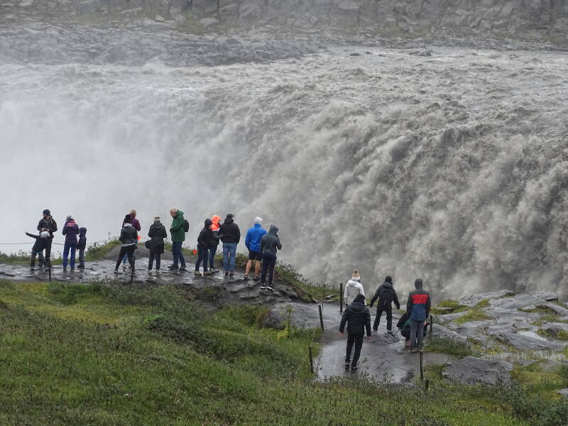 Eerst is Aadje naar Dettifoss en Selfoss gereden. Dat zijn 2 watervallen in de Jökulsárgljúfur canyon. Vooral de Dettifoss is bekend en erg mooi; het is de krachtigste waterval van Europa en is 44 meter hoog en ruim 100 meter breed. Het pad naar de Dettifoss is goed te belopen en wat komt het pad dichtbij de waterval. Echt onwijs gaaf! Na ook naar de Selfoss te hebben gewandeld, 1 km zuidelijker, is Aadje verder gereden. Nu dat doorrijden lukte niet echt. Er was een fors stuk gravel dat er erg slecht bij lag. Aadje was al blij als ze de 20 km p/u haalde, want alles trilde als een gek. Vervolgens een stop gemaakt bij Asbyrgi. Het was vandaag erg koud en kil, dus ik heb maar een korte route gewandeld in deze canyon.