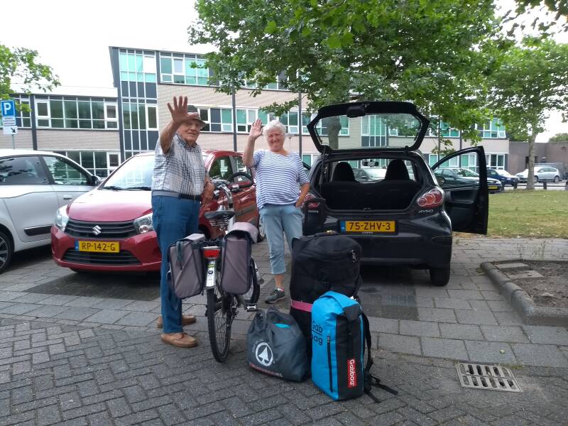 Het is nu zaterdagochtend 27 juli en de bagage staat klaar in de gang. 22 kg ruimbagage, een 8 kg zware rugtas en dan nog een heuptas met mijn foto en filmapparaat. Nu, Aadje is er klaar voor ....... Op naar IJsland en Groenland!