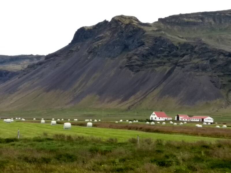 Helaas moest ik na 1 nachtje mijn leuke huisje in Fossatun weer verlaten. Vandaag had ik een rit van 200 km voor de boeg naar Stykkisholmur op het schiereiland Snaefellsnes. Een mooie rit door het ruige en woeste landschap. Kaal is het hier ook; geen boom te bekennen! Overigens zijn de wegen tot nu prima. Dit zijn meestal geasfalteerde eenbaanswegen met twee rijstroken waar je max. 90 km kunt rijden.