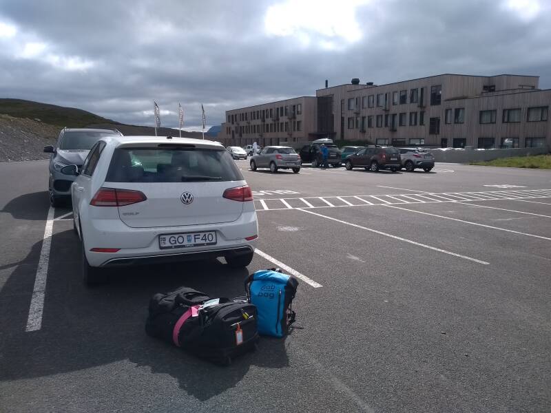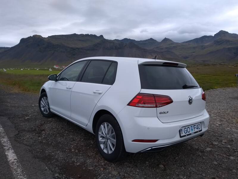 Om 15.00 uur plaatselijke tijd (in Nederland is het 2 uur later) aangekomen op Keflavik. Da's de internationale luchthaven van IJsland. Na lang wachten kwam gelukkig de ruimbagage 😊 Vervolgens de huurauto opgehaald. Het is dit keer een witte VW Golf met automaat. Om half 5 kon Aadje dan eindelijk beginnen met de eerste autorit in IJsland van zo'n 145 km. Eerst koers naar Reykjavik. Hier heb ik bij mijn hotel over 10 nachtjes even wat bagage afgeleverd.