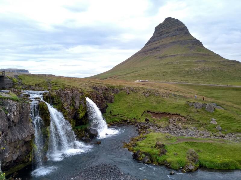 Snaefellsnes wordt ook wel IJsland in het klein genoemd, omdat je hier alles kunt vinden als in de rest van IJsland zoals kliffen, vulkanen, lavavelden en warmwaterbronnen. Helaas had Aadje vandaag te kort tijd om dit alles te bewonderen, omdat ik mij om 3 uur bij de ferry met bestemming de Westfjorden moest melden. Wel heb ik 2 keer een lange stop gemaakt. De eerste bij Ytri Tunga. Bij deze plek aan de kust zijn zeehonden te bewonderen. De volgende stop was bij de meest gefotografeerde berg van IJsland: Kirkjufell. Om kwart over drie kon Aadje de ferry oprijden. Wat wel grappig is dat dit de oude veerboot is die vroeger vanuit Harlingen naar Terschelling & Vlieland vaarde.