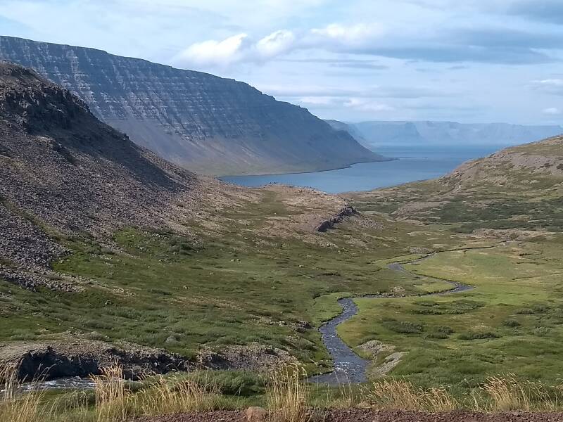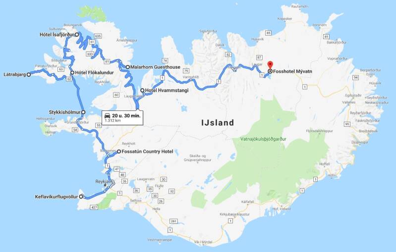 Rond half 10 ben ik aan de rit van 94 km begonnen. Het was vandaag super weer. Geen regen te bekennen, 21 graden in Flokalundur en niet te veel wind. Nu, dat is heel wat anders dan dat je over de Westfjorden leest: bijna alle dagen regen en veel wind!