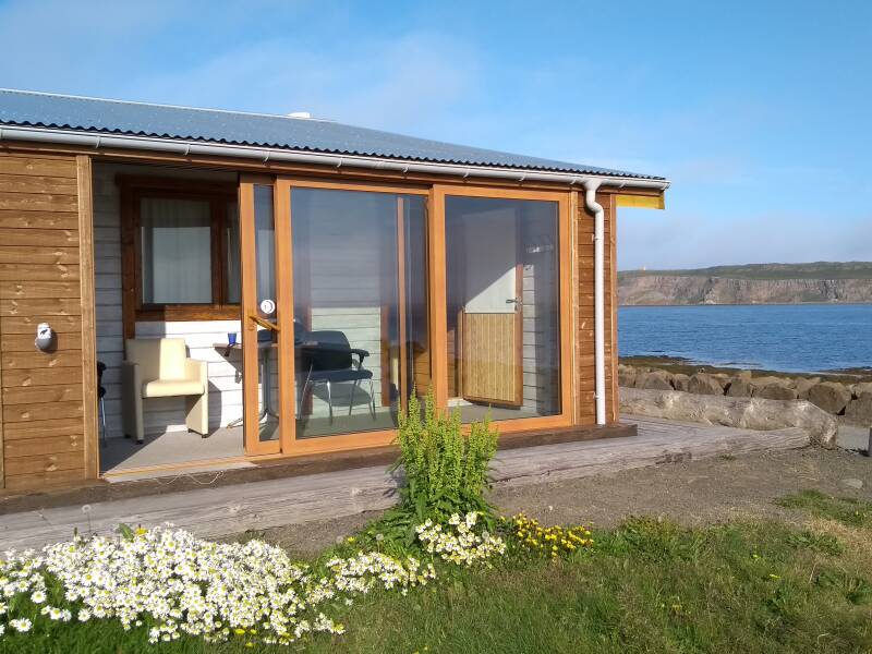 Na aankomst in de Westjorden was het nog zo'n 6 km rijden naar mijn onderkomen: Hotel Flokalundur. Aan de buitenkant een niet heel aantrekkelijk gebouw, maar de kamer hier was pas helemaal gerenoveerd en zag er dan ook prima uit!