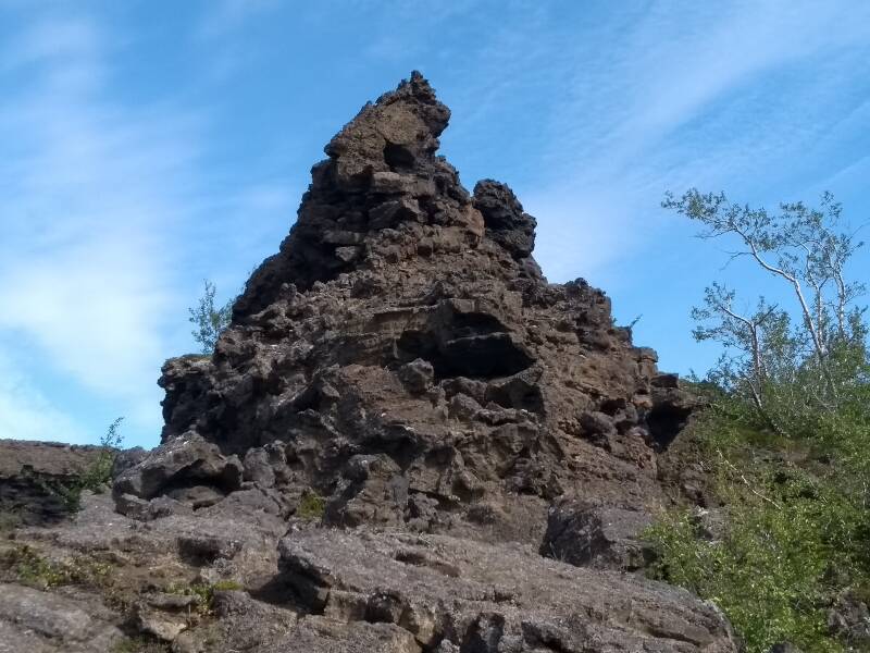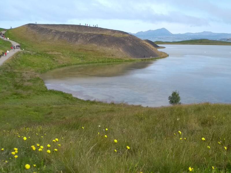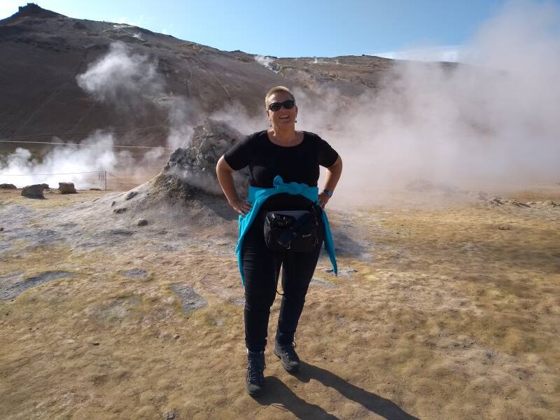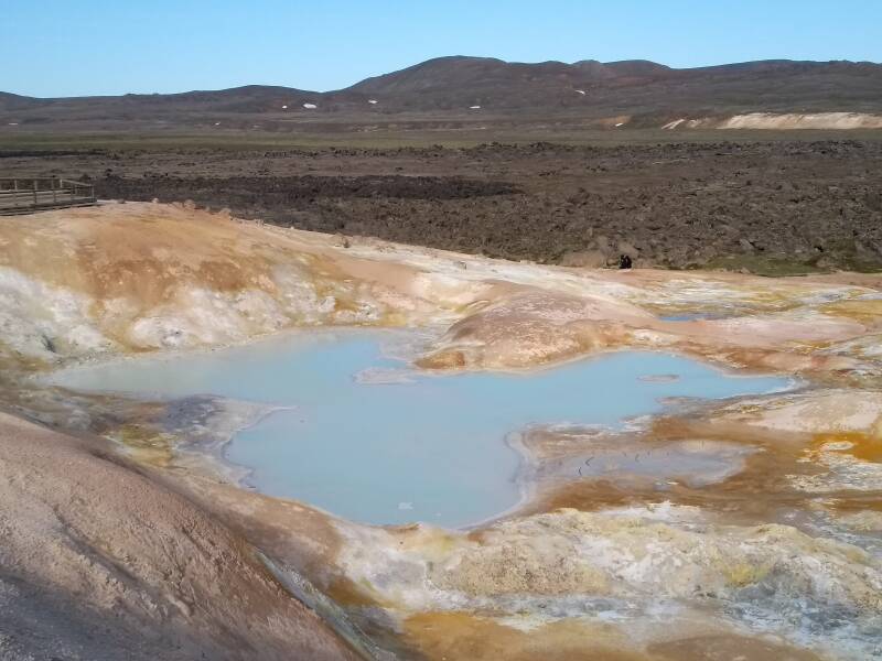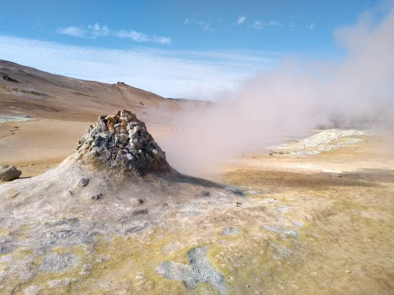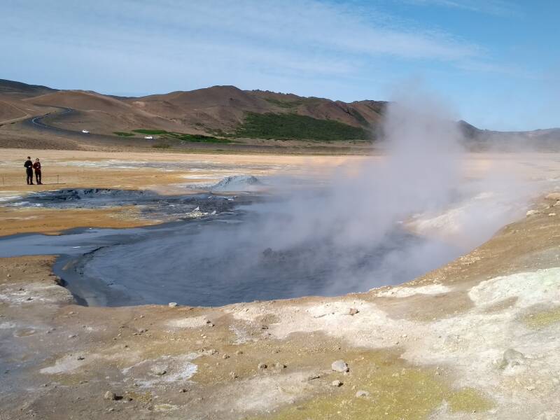 Vervolgens de hort op. Rond Myvatn is het een geothermisch gebied. Lavavelden, kraters, pruttelende modderpoelen en overal stoom uit de grond.