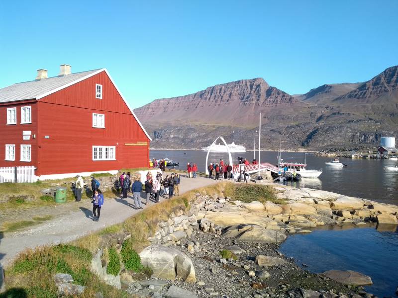 Na een aantal uur varen gingen we voor anker bij het plaatsje Kulusuk, eveneens in het oosten van Groenland. In dit dorpje wonen maar 200 mensen. Volgens mij wonen hier meer sledehonden dan inwoners! Vandaag was het feest in het dorpje (in Groenland vieren ze van alles). Het was de eerste schooldag van de kinderen. We mochten daarom de school ook vanbinnen bekijken. Het was deze dag weer prima weer 8/10 graden, droog, soms zon. Daarnaast een klein beetje wind, maar door de ligging voelt die wel erg koud aan. Dus de sjaal om, muts op en handschoenen aan!